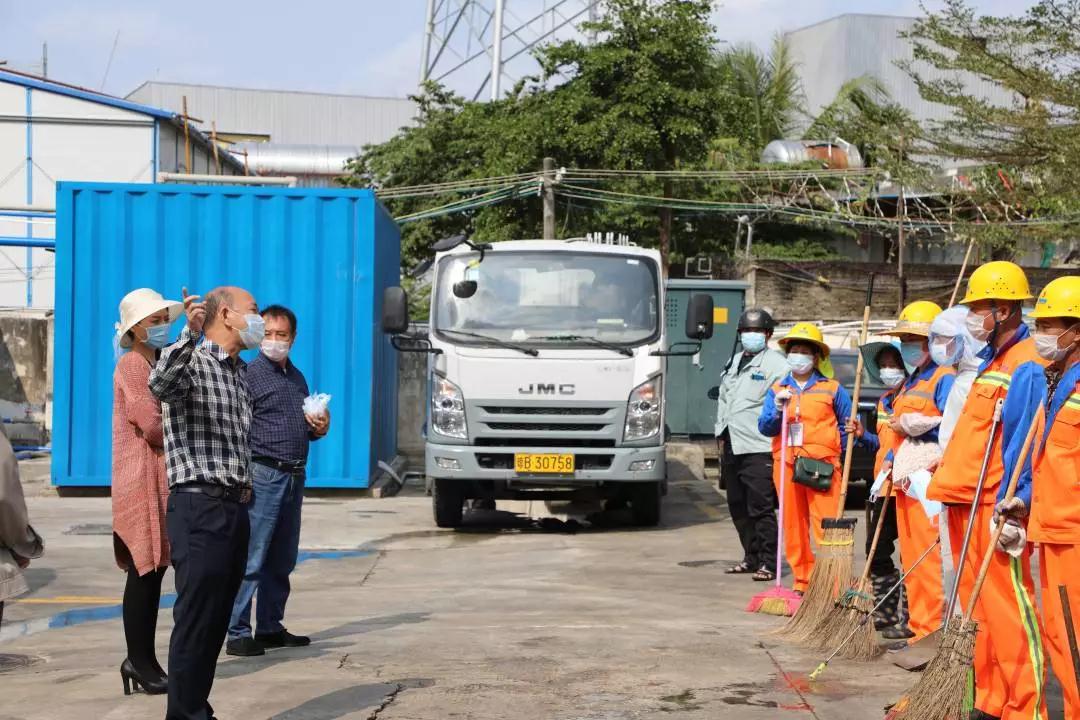 為一線環(huán)衛(wèi)工人送口罩、收集疫情信息;到荔枝溝中轉(zhuǎn)運站檢查垃圾處理、消毒情況