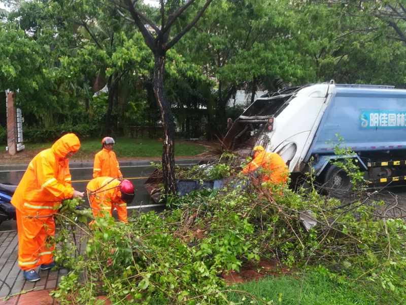 今天上午,三亞、陵水依舊大雨連綿,道路上有少量的積水,集團(tuán)公司各區(qū)域負(fù)責(zé)人靠前指揮,組織人員冒雨對(duì)臺(tái)風(fēng)過(guò)后的主次干道、綠化帶進(jìn)行大清理,車(chē)輛、人員及時(shí)上路,對(duì)道路堆積泥沙進(jìn)行沖洗,對(duì)散落垃圾、斷裂樹(shù)枝樹(shù)葉進(jìn)行全面普掃清運(yùn),確保道路疏通整潔。園林綠化部迅速行動(dòng),對(duì)三亞鳳凰路、三亞灣路沿線的倒伏樹(shù)木進(jìn)行扶正、清理折斷樹(shù)木。此外,公司還為每個(gè)水域保潔員配備救生衣,在確保安全的前提下做好河道、海域等水面垃圾清理工作,禁止工人風(fēng)雨高峰期間涉水作業(yè)。