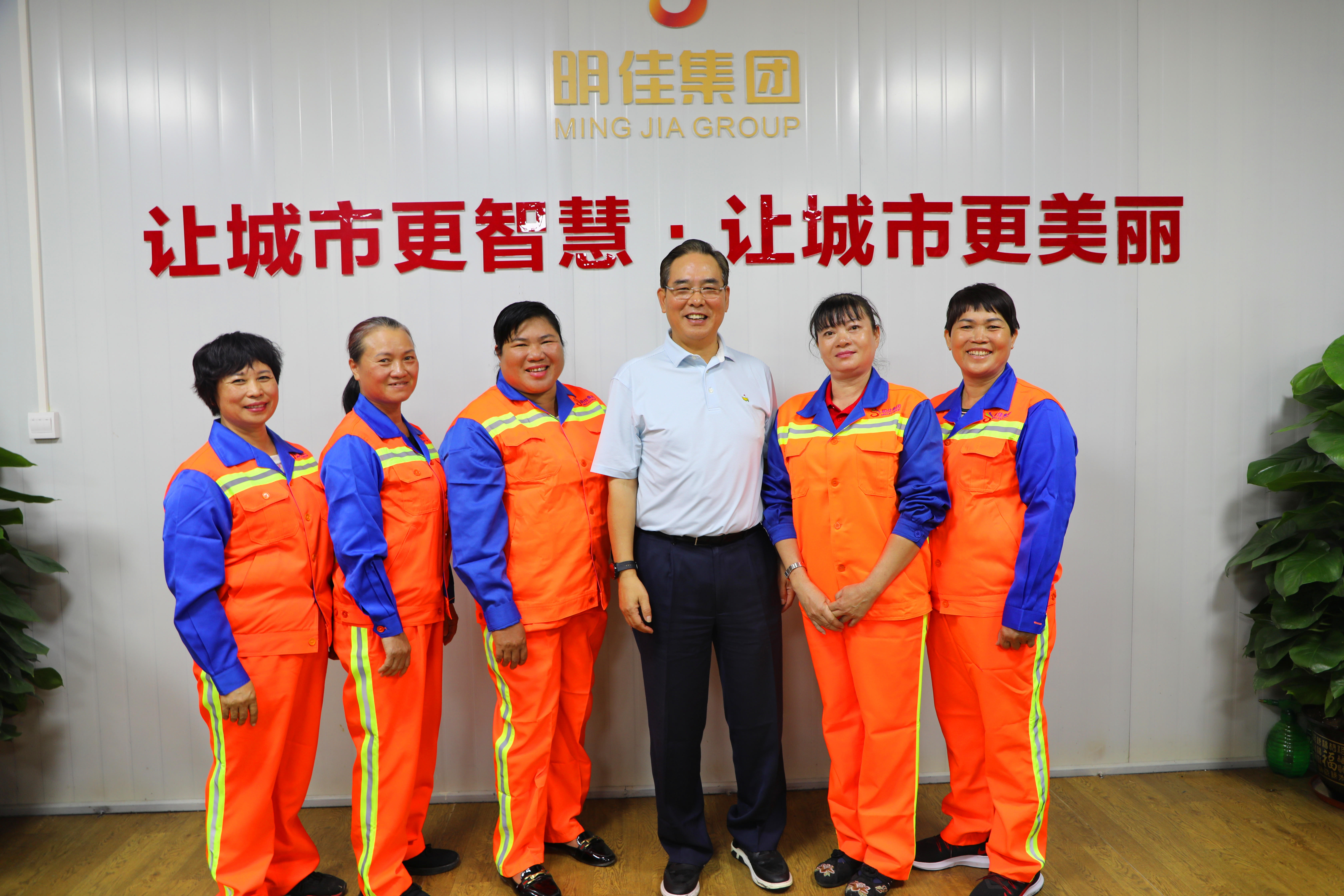 他肯定了明佳集團工會取得的成績,并親切慰問了現(xiàn)場的環(huán)衛(wèi)工人,與他們一一握手,并合影留念。