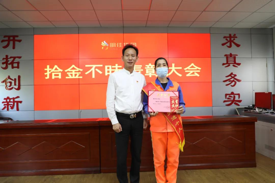 會上,明佳集團(tuán)黨支部書記、董事長陳明宣讀了《關(guān)于羅少女及吉陽四隊拾金不昧的表彰通報》