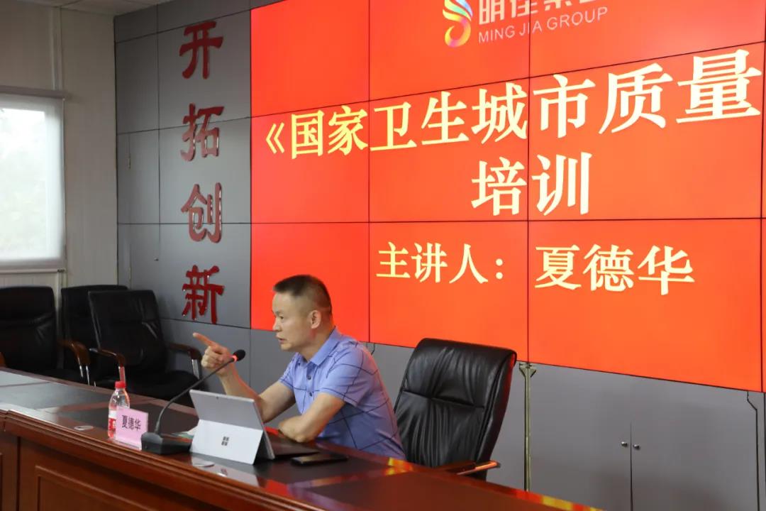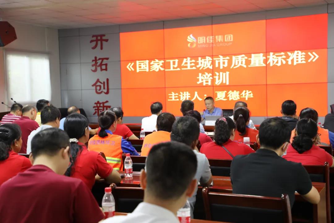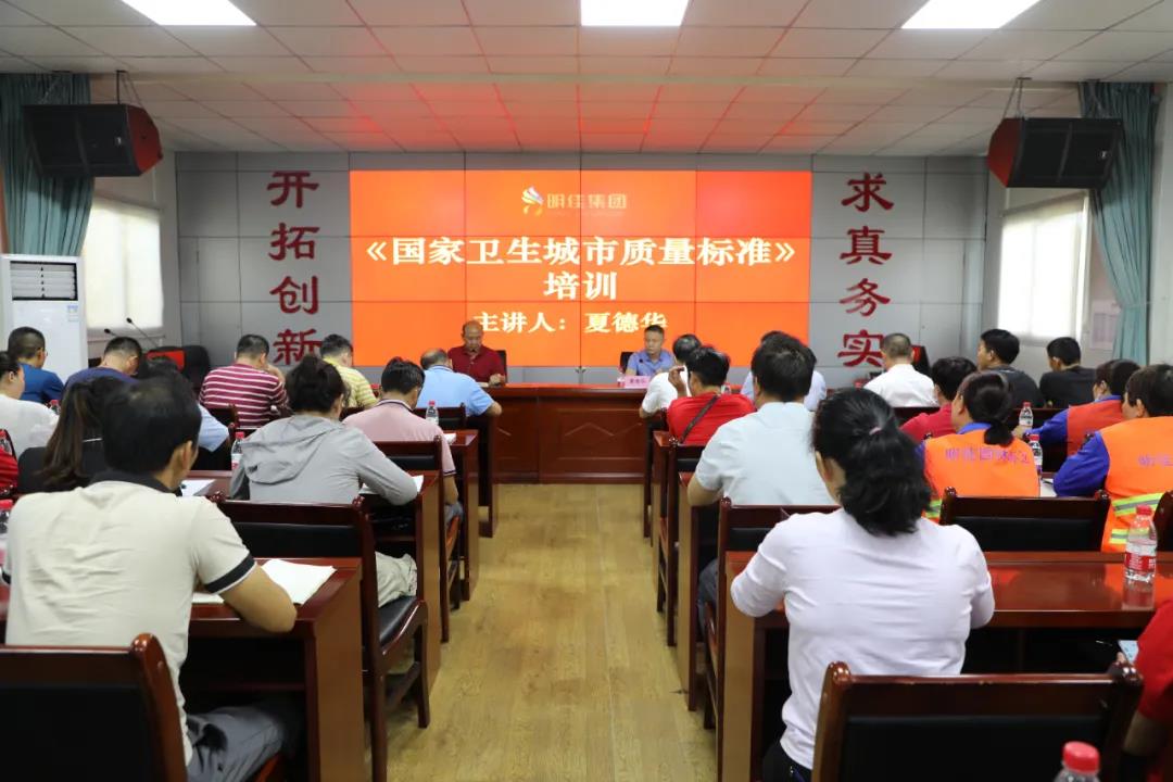 此次培訓分三項內(nèi)容:一是總裁陳云分析國家衛(wèi)生城市復審形勢;二是夏德華調(diào)研員進行《國家衛(wèi)生城市質(zhì)量標準》培訓;三是副總羅京鮮結(jié)合公司現(xiàn)狀進行講解。