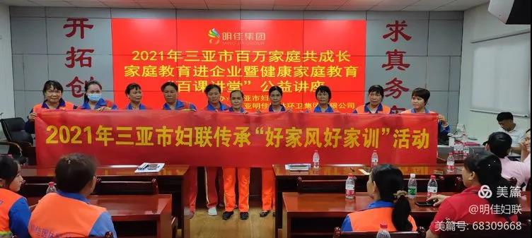 為引導(dǎo)廣大婦女帶動家庭成員大力培育新時代家庭觀,推動社會主義核心價值觀落細落小落實到家庭,切實落實家庭教育立德樹人的根本任務(wù),根據(jù)省婦聯(lián)“家家幸福安康工程”部署,結(jié)合“我為婦女群眾辦實事”實踐活動。2021年7月20日下午15時30分,由市婦聯(lián)主辦、明佳婦聯(lián)協(xié)辦的2021年三亞市百萬家庭共成長家庭教育進企業(yè)暨健康家庭教育“百課講堂”公益培訓(xùn)課在明佳三樓會議室成功舉行,培訓(xùn)內(nèi)容為家庭教育知識和女性健康知識,明佳集團80余名職工參加了此次培訓(xùn)。