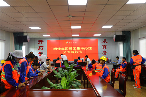 11月14日上年09:00時,明佳集團黨支部組織員工集中辦理光大銀行卡。此次活動由支部宣傳委員陳冬梅負責牽頭,調協(xié)光大銀行三亞大東海支行,為集團員工集中辦理光大銀行工資卡共計四佰余張,用實際行動踐行和強化黨員為民服務的初心和使命。