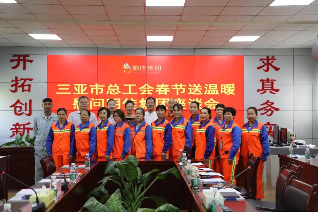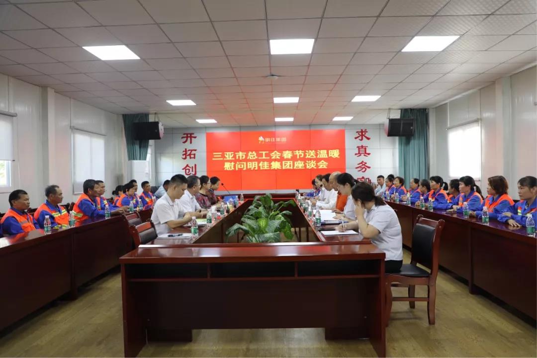 最后,慰問團(tuán)一行來到三亞明佳園林環(huán)衛(wèi)集團(tuán)有限公司召開座談會(huì)。會(huì)上,慰問團(tuán)展開討論了高齡、高風(fēng)險(xiǎn)環(huán)衛(wèi)從業(yè)人員的權(quán)益保障問題,并詳細(xì)了解了企業(yè)職工在工作、生活中存在的問題,并認(rèn)真聽取他們的訴求和建議。